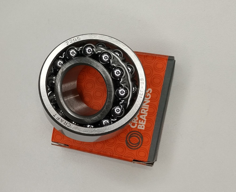 Подшипник шариковый радиальный сферический двух рядный, открытый, самоустанавливающийся (самоцентрирующийся). Позволяет установку при значительной несоосности посадочных мест и больших прогибах валов. В зависимости от серии подшипников перекос осей может находиться в пределах 1°…3°. Способен работать при высоких скоростях вращения